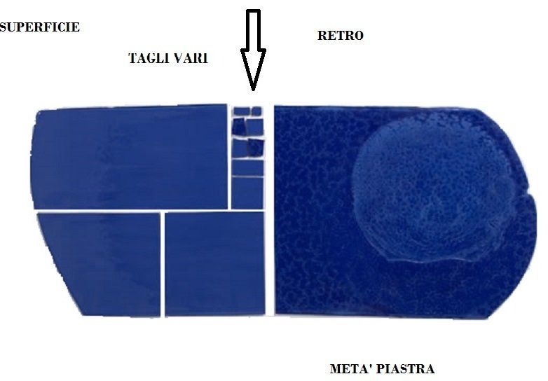 Essendo la piastrina utilizzata principalmente di superficie detta "crosta" in alcuni colori il colore interno sarà differente di tonalità e/o presenterà delle venature.